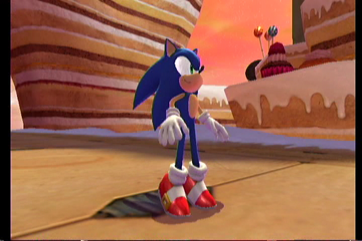 少し背伸びをして眺めているソニック。なんだかんだ言いつつも