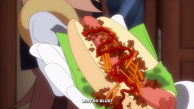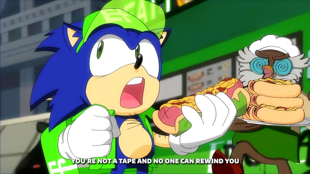 コックに咎められ、食べるのはガマンして配達へ向かうソニック